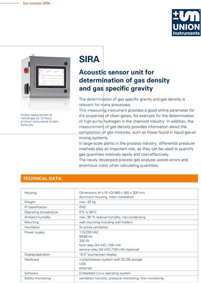 The SIRA process gas analyzer is the standard device for online determination of gas specific gravity and gas density using an acoustic density cell.