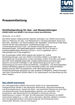 - Permanente Drucküberwachung in Gasdruckregel- und Messanlagen
